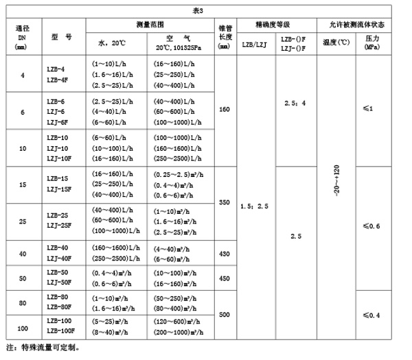 RZ-LZB()B/LZJ系列不銹鋼玻璃轉子流量計型號規格及技術參數