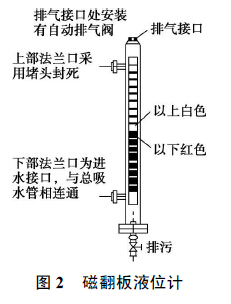由于在磁翻板液位計的進水接口法蘭處安裝有閥門, 在平時不需要水泵水輪機排水檢修時, 該閥門處于關閉狀態, 必要時可以通過裝置底部的排污閥門把液位計主導管內的水排空。