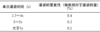 表1 灌裝時間和重復性的關系