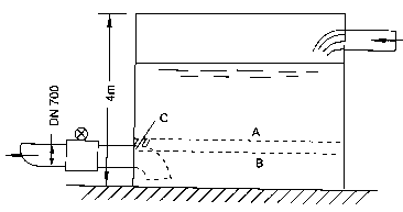 案例4 廣西某水廠在郊區(qū)山頭設(shè)置清水池,利用水池高度勢能發(fā)送成品水。運行人員反映計量出水量的DN700mm電磁流量計有時候流量顯示不穩(wěn)。晃動達(dá)百分之十幾到百分之二十,誤差也大,估計相差約20%。現(xiàn)場考查發(fā)現(xiàn)水池如圖7-9所示安裝流量傳感器,水位高度不足就會卷入氣泡,甚至流量傳感器測量管內(nèi)不能充滿。如水位降至A線時,雖高出吸入口**,但高出不多,還會在C處產(chǎn)生旋渦,將水位表面空氣卷入形成氣泡,使顯示晃動;若水位降到B,測量管將不滿管。我們建議如圖虛線所示裝一彎頭,擴大水池有效容量,減少吸入氣泡的機會,彌補原設(shè)計的不足。這類實例是經(jīng)常遇到的。