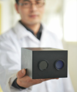 在中國航天科工二院207所,記者看到,該設(shè)備是一臺通體黑色的盒狀機器,大小與一本牛津英語詞典相仿,重約3斤,成年人一只手就可以輕松托起。引人注目的是機身正前方的兩個直徑5厘米左右的鏡頭,一紫一黑,一個負(fù)責(zé)感應(yīng)紫外線,一個則負(fù)責(zé)觀測可見光。紫外圖像可以精確顯示目標(biāo)產(chǎn)生電暈和放電情況,可見光圖像可以還原被測目標(biāo)周圍的背景信息,二者結(jié)合生成的雙光譜融合圖像,相當(dāng)于在一幅圖像上明確指出了目標(biāo)漏電位置情況。