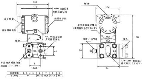 (零基準(zhǔn)校驗范圍,參考條件下,硅油充液,316L不銹鋼隔離膜片)RZ3051-GP智能壓力變送器用于測量液體、氣體或蒸汽的液位、密度和壓力,然后將其轉(zhuǎn)換為4~20mA DC信號輸出。RZ3051-GP智能壓力變送器也可與HART手操器相互通訊,通過它進(jìn)行設(shè)定、監(jiān)控。